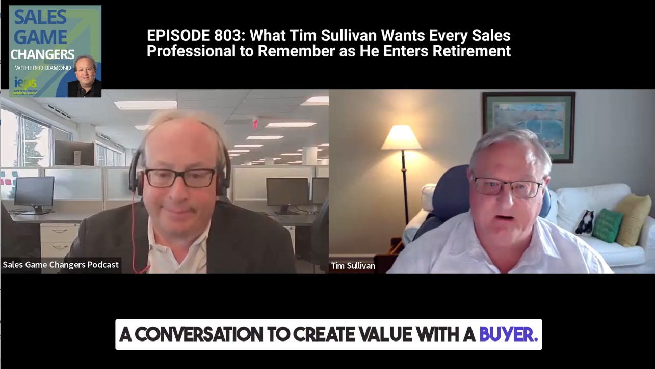 Today’s show featured an interview with Tim Sullivan, former sales training leader at companies including Richardson and Sales Performance International. He also authored numerous books and worked in technology sales. He was a past speaker at the Institute for Effective Professional Selling.